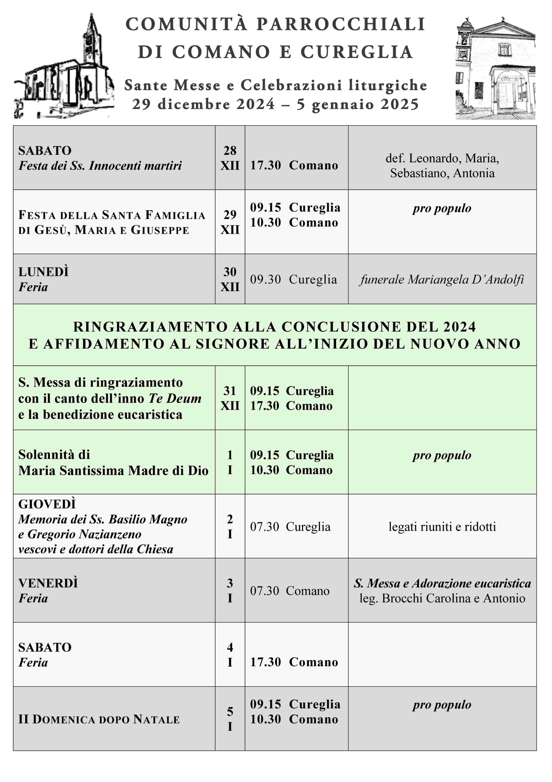 S. Messe e celebrazioni: 29 dicembre 2024 – 5 gennaio 2025 don GiustinoDic 28, 2024Dic 28, 2024 <span class="nav-subtitle screen-reader-text">Page</span> Previous PostSante celebrazioni del Natale 2024Next PostS. Messe e celebrazioni: 5 – 12 gennaio 2025 Related Posts S. Messe e celebrazioni: 2 – 9 novembre 2025 don GiustinoOtt 30, 2025Ott 30, 2025 S. Messe e celebrazioni: 26 ottobre – 2 novembre 2025 don GiustinoOtt 27, 2025Ott 27, 2025 S. Messe e celebrazioni: 19 – 26 ottobre 2025 don GiustinoOtt 18, 2025Ott 18, 2025