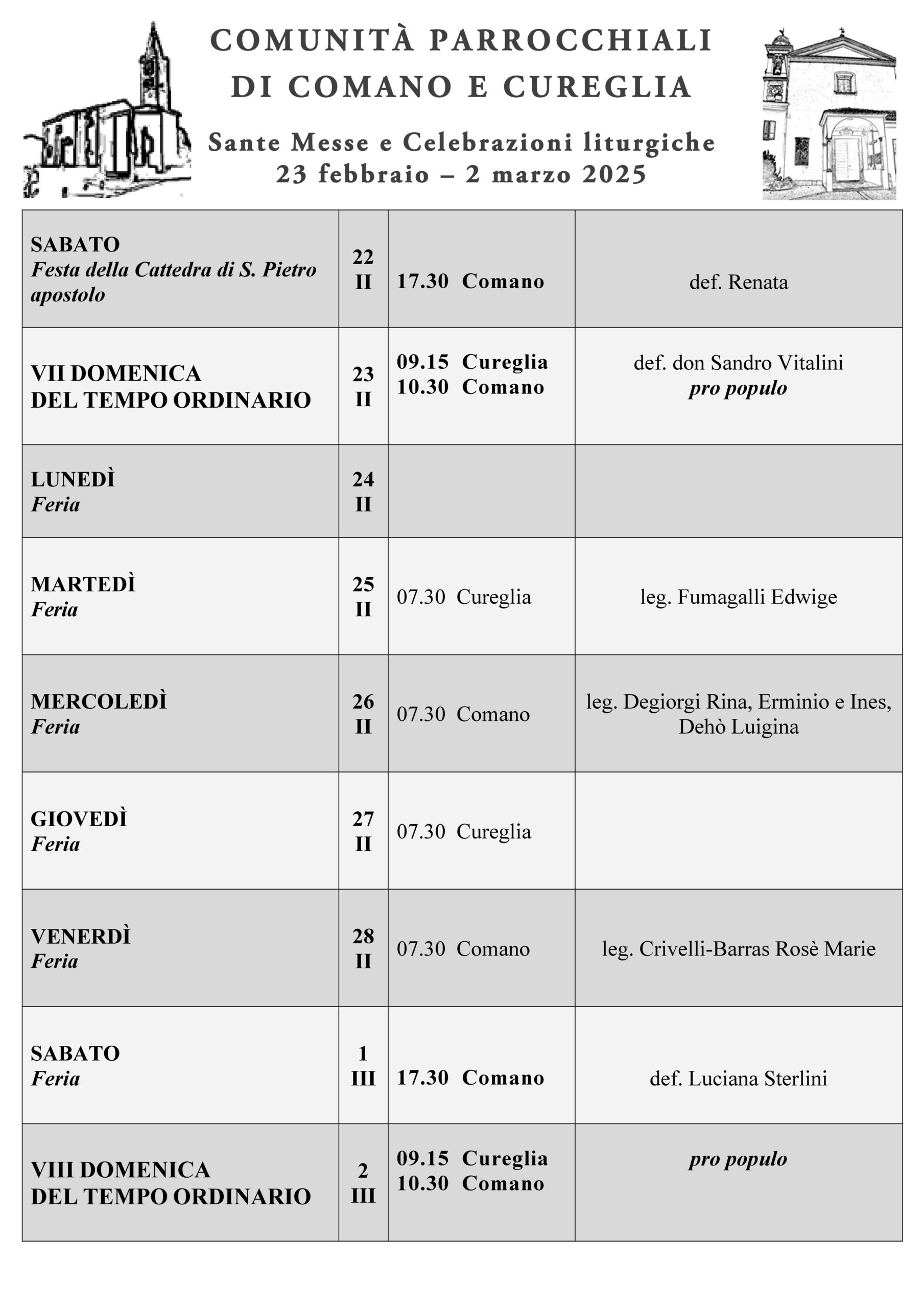 S. Messe e celebrazioni: 23 febbraio – 2 marzo 2025