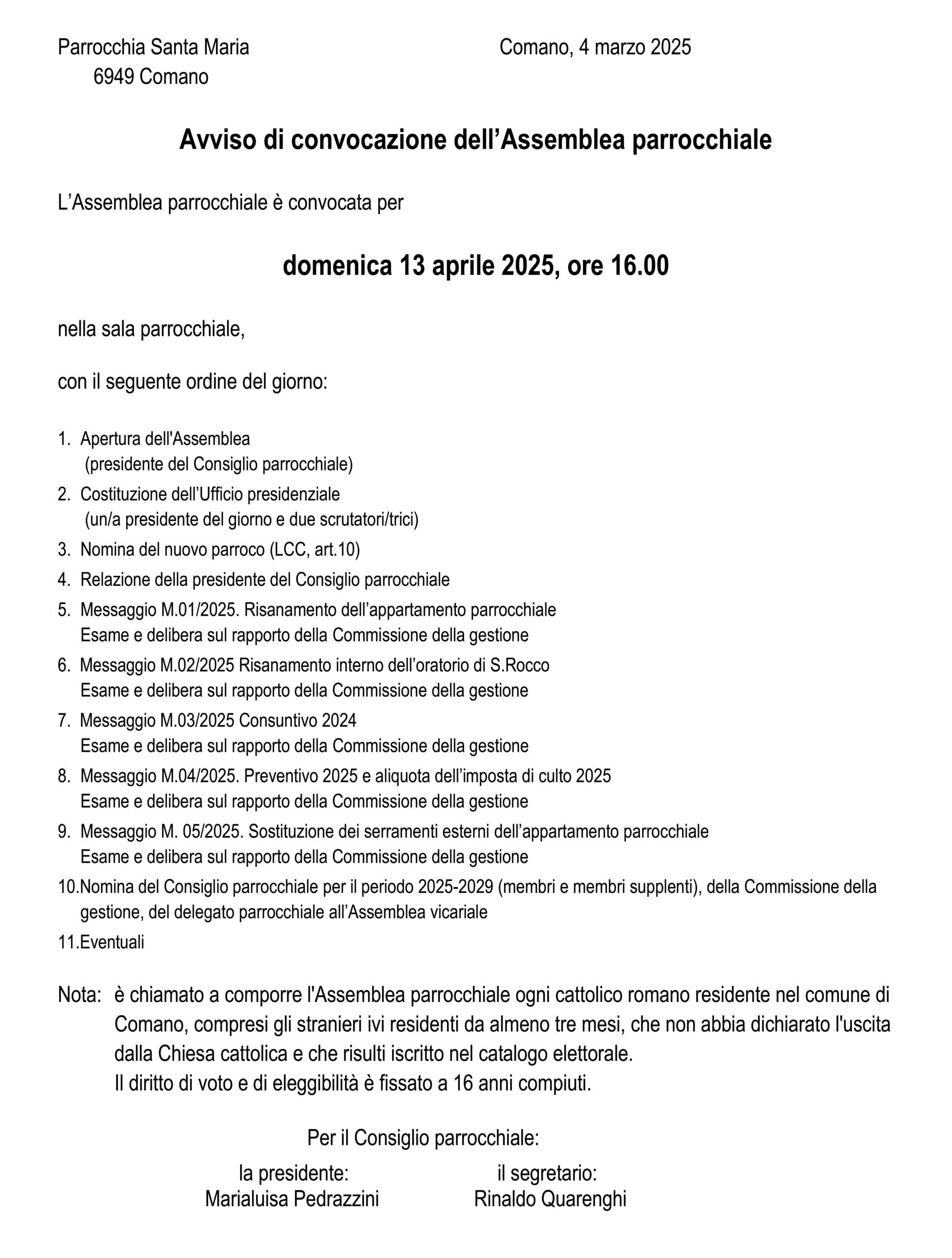 Comano: Assemblea parrocchiale don GiustinoApr 10, 2025Apr 10, 2025 <span class="nav-subtitle screen-reader-text">Page</span> Previous PostS. Messe e celebrazioni: 6 – 13 aprile 2025Next PostS. Messe e celebrazioni: 13 – 20 aprile 2025 Related Posts Gruppo Lectio don GiustinoSet 18, 2025Set 18, 2025 Giovani insieme per il nuovo anno pastorale don GiustinoSet 11, 2025Set 11, 2025 Preghiera in suffragio per Papa Francesco don GiustinoApr 22, 2025Apr 22, 2025