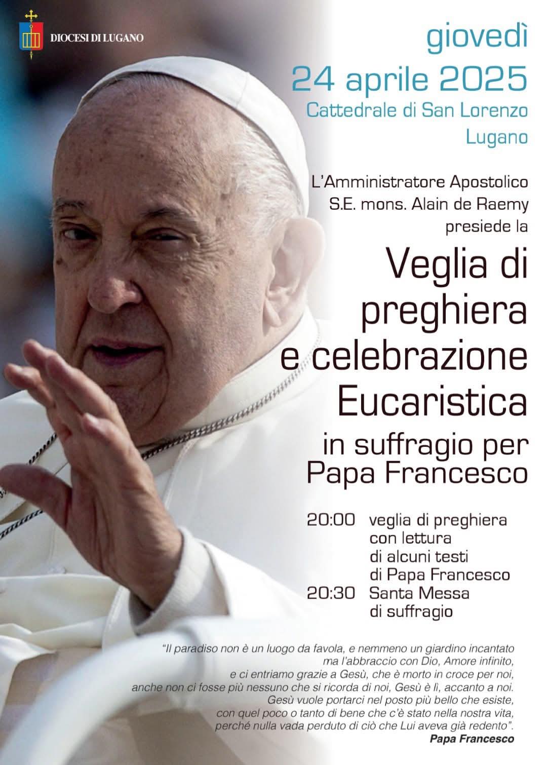 Preghiera in suffragio per Papa Francesco don GiustinoApr 22, 2025Apr 22, 2025 <span class="nav-subtitle screen-reader-text">Page</span> Previous PostS. Messe e celebrazioni: 20 – 27 aprile 2025Next PostS. Messe e celebrazioni: 27 aprile – 4 maggio 2025 Related Posts S. Messe e celebrazioni: 2 – 9 novembre 2025 don GiustinoOtt 30, 2025Ott 30, 2025 S. Messe e celebrazioni: 26 ottobre – 2 novembre 2025 don GiustinoOtt 27, 2025Ott 27, 2025 S. Messe e celebrazioni: 19 – 26 ottobre 2025 don GiustinoOtt 18, 2025Ott 18, 2025 Lascia un commento Annulla rispostaIl tuo indirizzo email non sarà pubblicato. I campi obbligatori sono contrassegnati *Commento * Nome * Email * Sito web Salva il mio nome, email e sito web in questo browser per la prossima volta che commento.