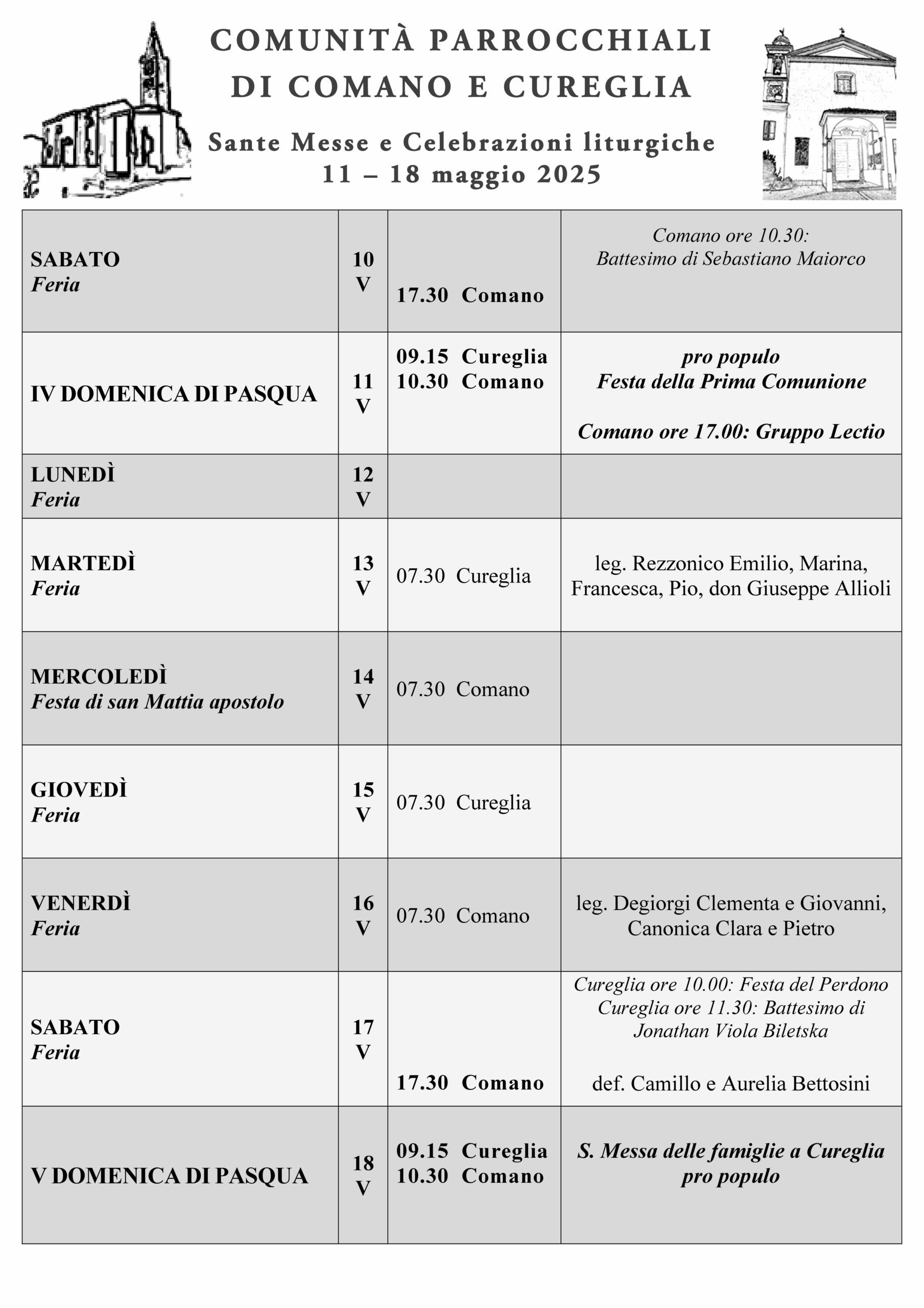 S. Messe e celebrazioni: 26 ottobre – 2 novembre 2025 don GiustinoOtt 27, 2025Ott 27, 2025 S. Messe e celebrazioni: 19 – 26 ottobre 2025 don GiustinoOtt 18, 2025Ott 18, 2025