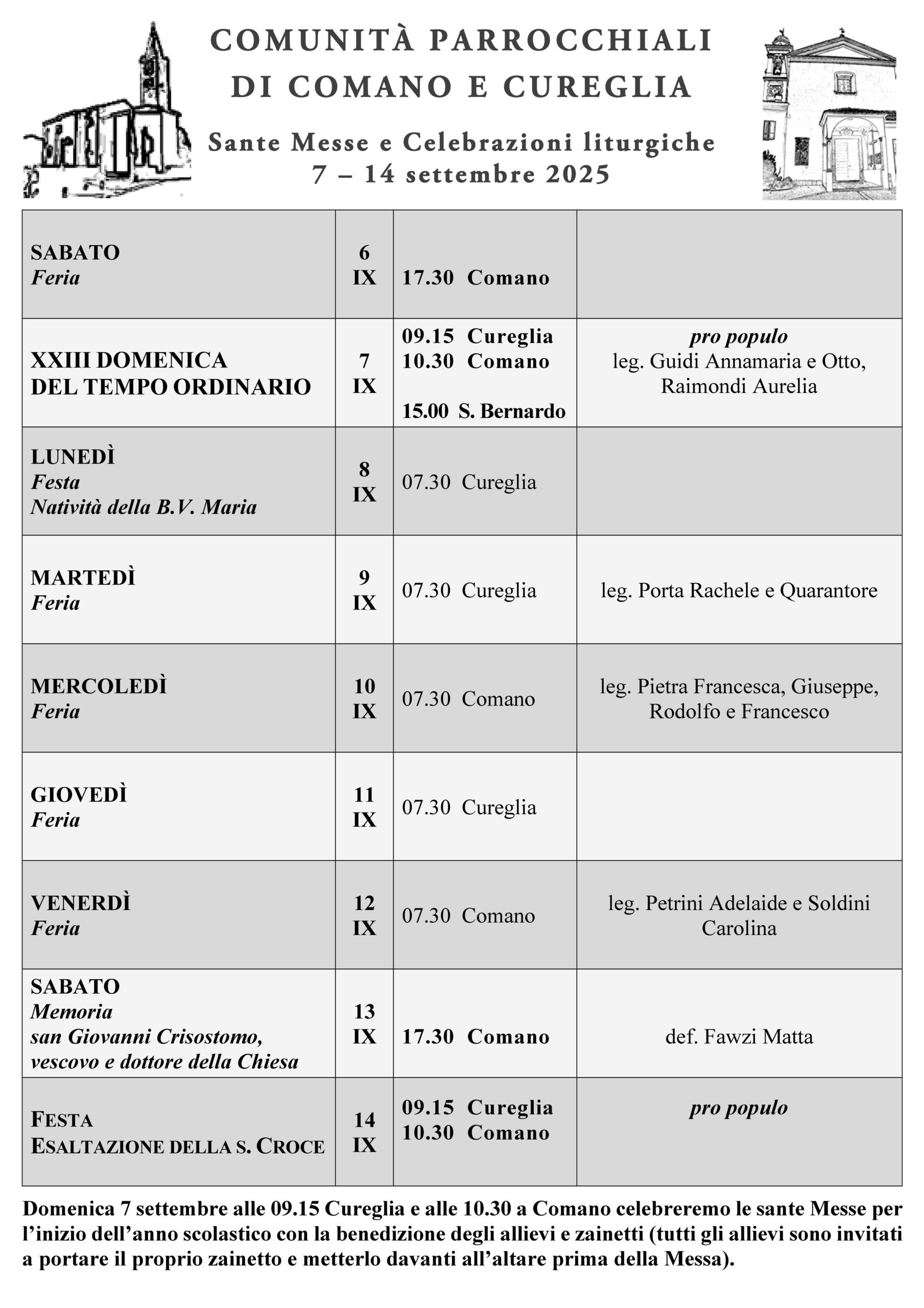 S. Messe e celebrazioni: 7 – 14 settembre 2025 don GiustinoSet 6, 2025Set 6, 2025 <span class="nav-subtitle screen-reader-text">Page</span> Previous PostS. Messe e celebrazioni: 31 agosto – 7 settembre 2025Next PostGiovani insieme per il nuovo anno pastorale Related Posts S. Messe e celebrazioni: 2 – 9 novembre 2025 don GiustinoOtt 30, 2025Ott 30, 2025 S. Messe e celebrazioni: 26 ottobre – 2 novembre 2025 don GiustinoOtt 27, 2025Ott 27, 2025 S. Messe e celebrazioni: 19 – 26 ottobre 2025 don GiustinoOtt 18, 2025Ott 18, 2025