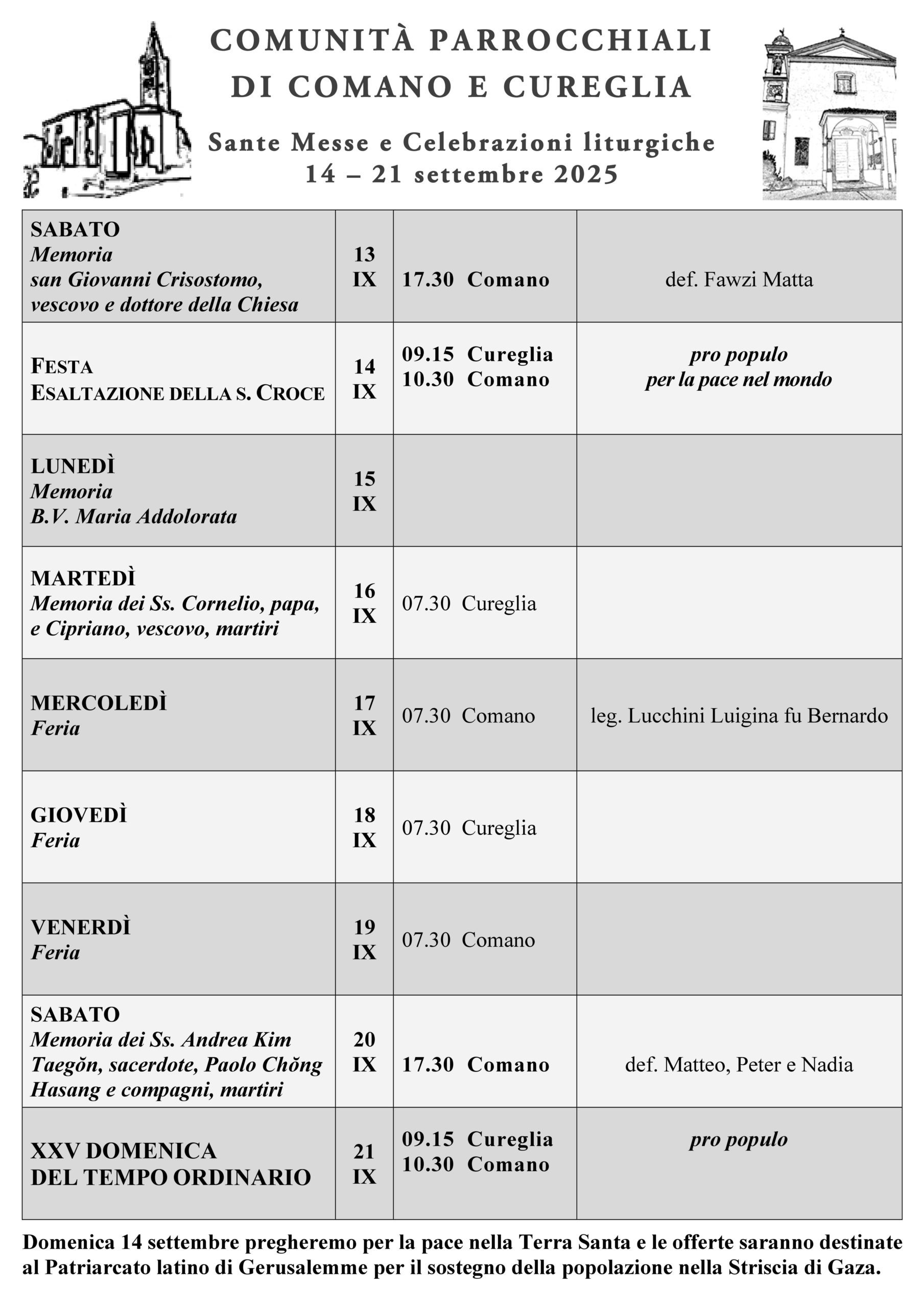 S. Messe e celebrazioni: 26 ottobre – 2 novembre 2025 don GiustinoOtt 27, 2025Ott 27, 2025 S. Messe e celebrazioni: 19 – 26 ottobre 2025 don GiustinoOtt 18, 2025Ott 18, 2025