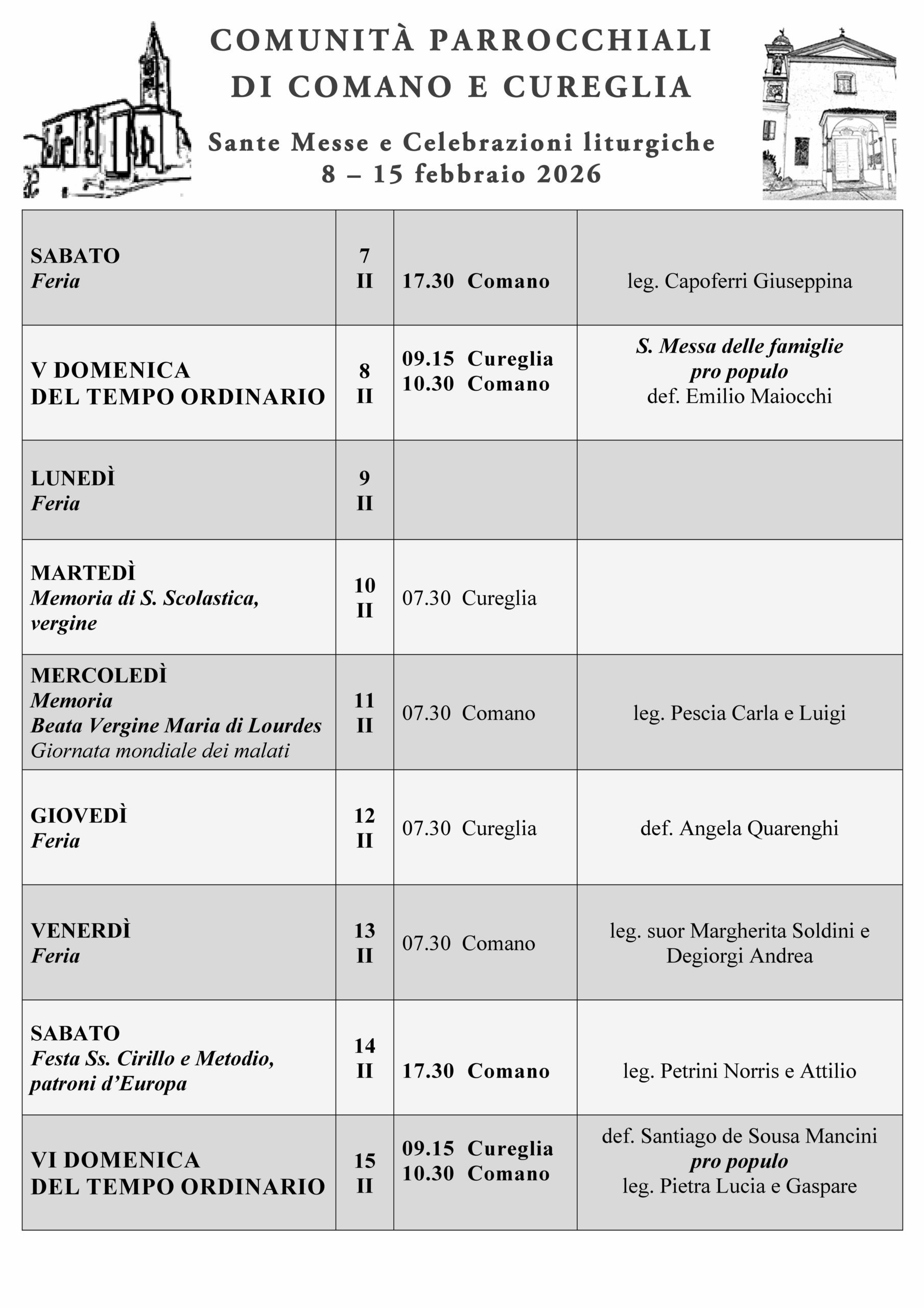 S. Messe e celebrazioni: 15 – 22 febbraio 2026 don GiustinoFeb 13, 2026Feb 13, 2026 S. Messe e celebrazioni: 1° – 8 febbraio 2026 don GiustinoFeb 2, 2026Feb 2, 2026