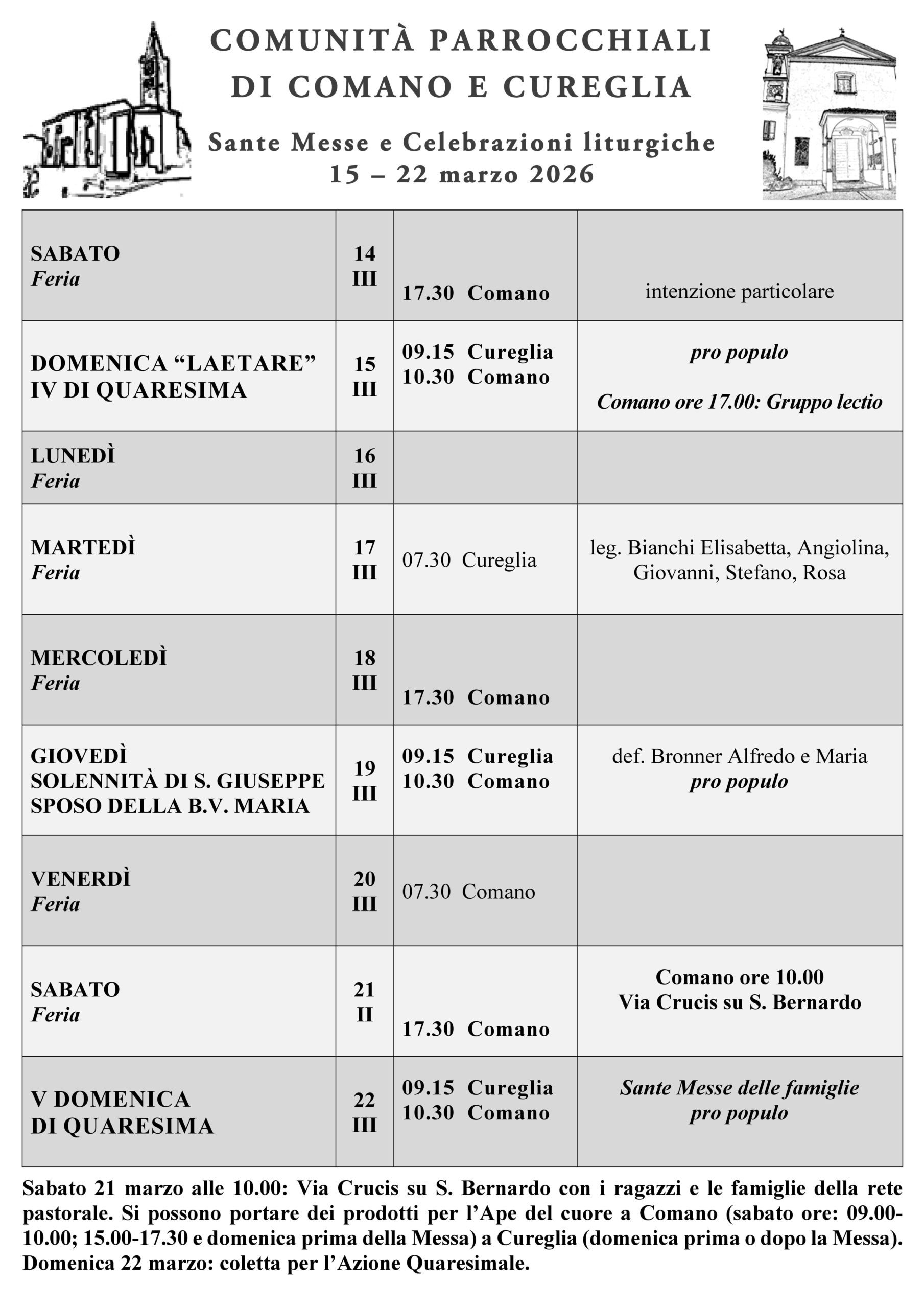 S. Messe e celebrazioni: 15 – 22 marzo 2026 don GiustinoMar 16, 2026Mar 16, 2026 <span class="nav-subtitle screen-reader-text">Page</span> Previous Post24 ore per il SignoreNext PostQuaresima – tempo di solidarietà Related Posts S. Messe e celebrazioni: 12 – 19 aprile 2026 don GiustinoApr 10, 2026Apr 10, 2026 S. Messe e celebrazioni: 5 – 12 aprile 2026 don GiustinoApr 4, 2026Apr 4, 2026 Via Crucis a Comano don GiustinoMar 30, 2026Mar 30, 2026 X