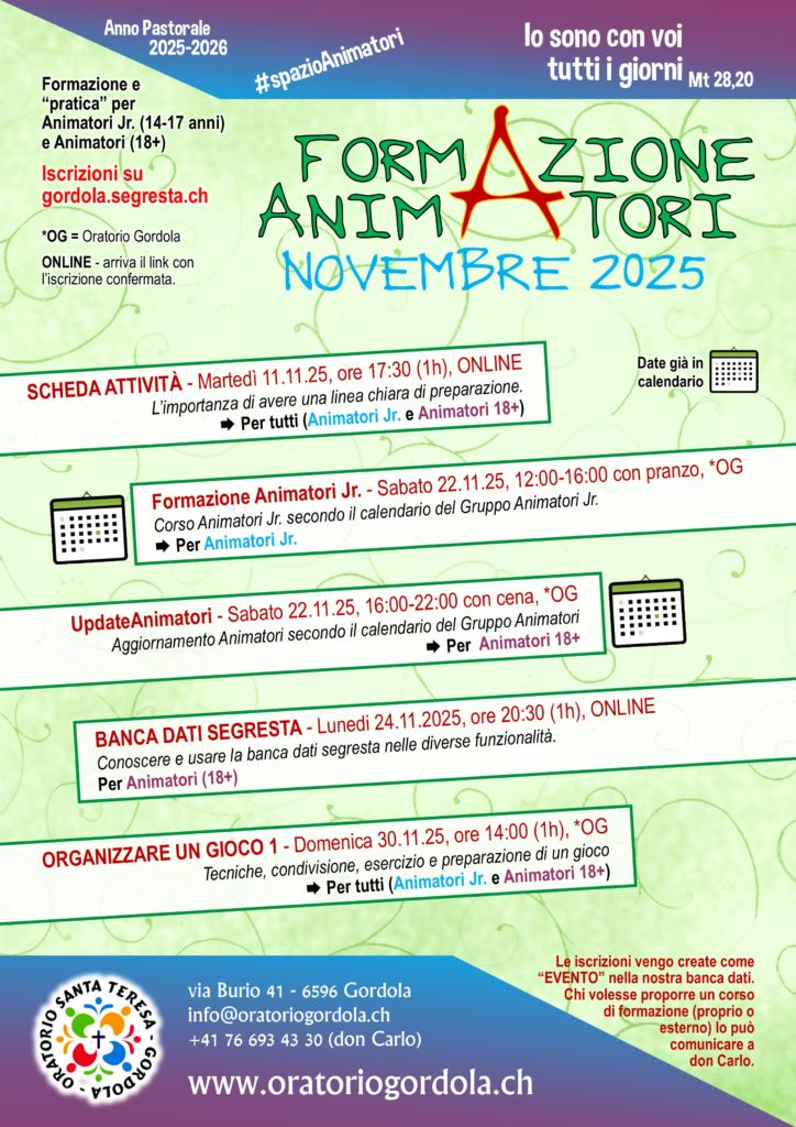 Per tutti gli animatori Jr (14-17 anni) e per gli animatori (18+), ecco gli appuntamenti già in calendario e “extra” di formazione. Occasioni preziose per prepararsi e formari ad essere animatori, testimoni, esempi per i nostri bambini e ragazzi.