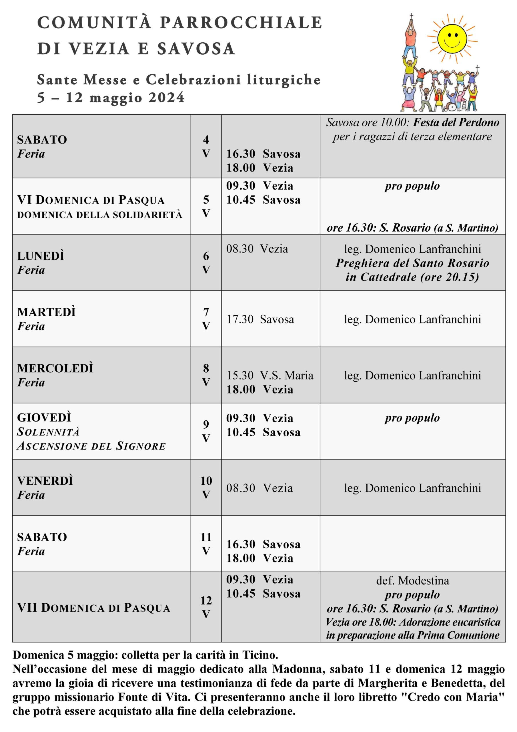 1 min read Celebrazioni S. Messe e celebrazioni: 5 – 12 maggio 2024 3 Maggio 202410 Maggio 2024 don Giustino0