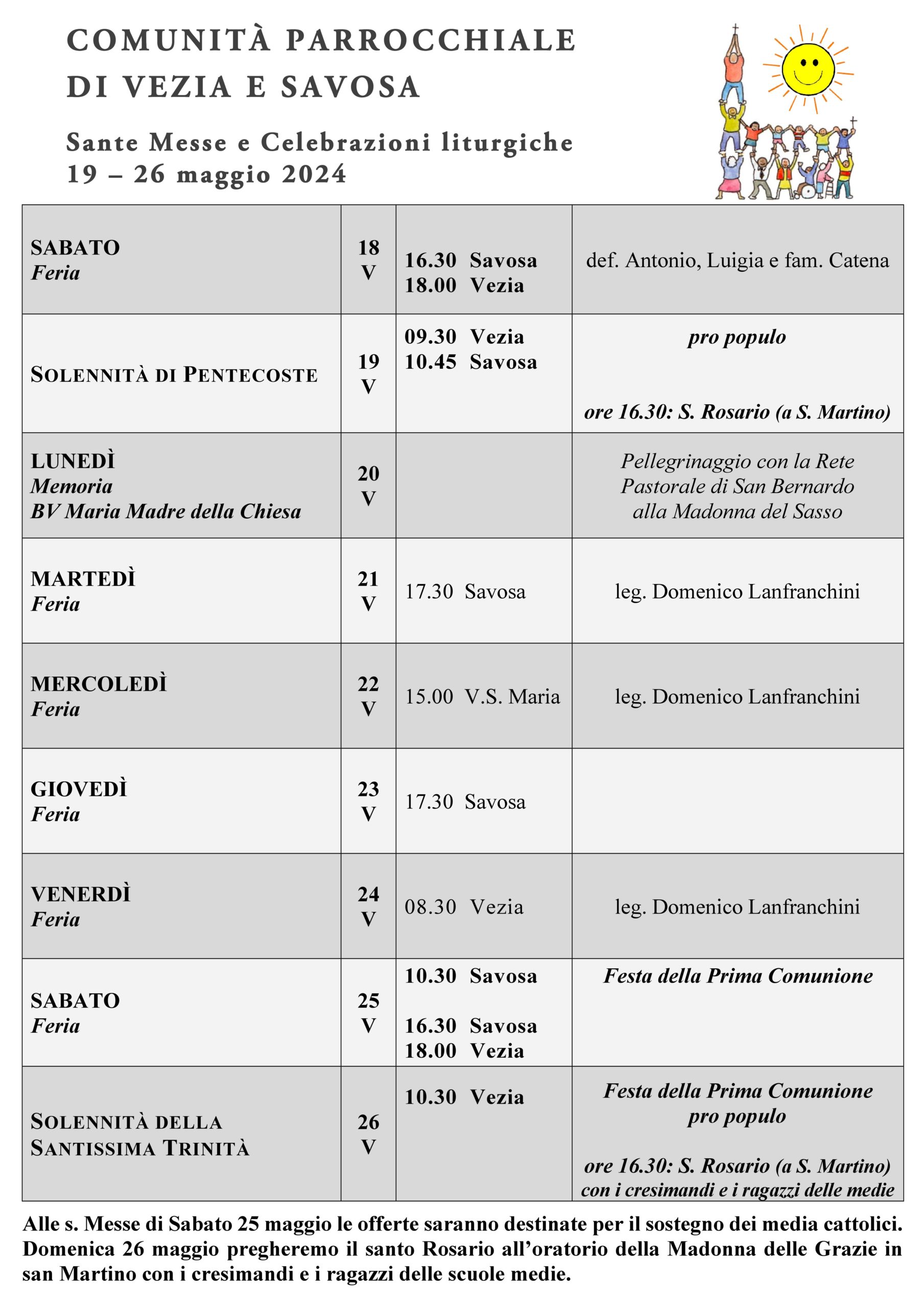 1 min read Celebrazioni S. Messe e celebrazioni: 19 – 26 maggio 2024 15 Maggio 202423 Maggio 2024 don Giustino0