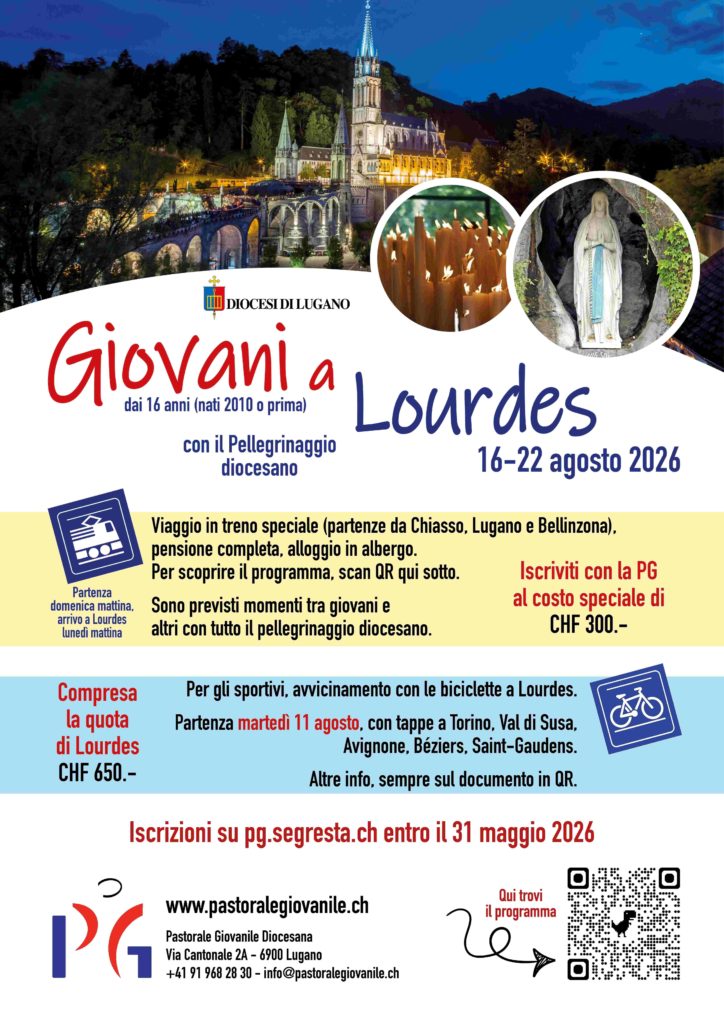 Dal 16 al 22 agosto 2026, come PG proponiamo ai giovani dai 16 anni (nati nel 2010 o prima) la partecipazione al pellegrinaggio diocesano a Lourdes.