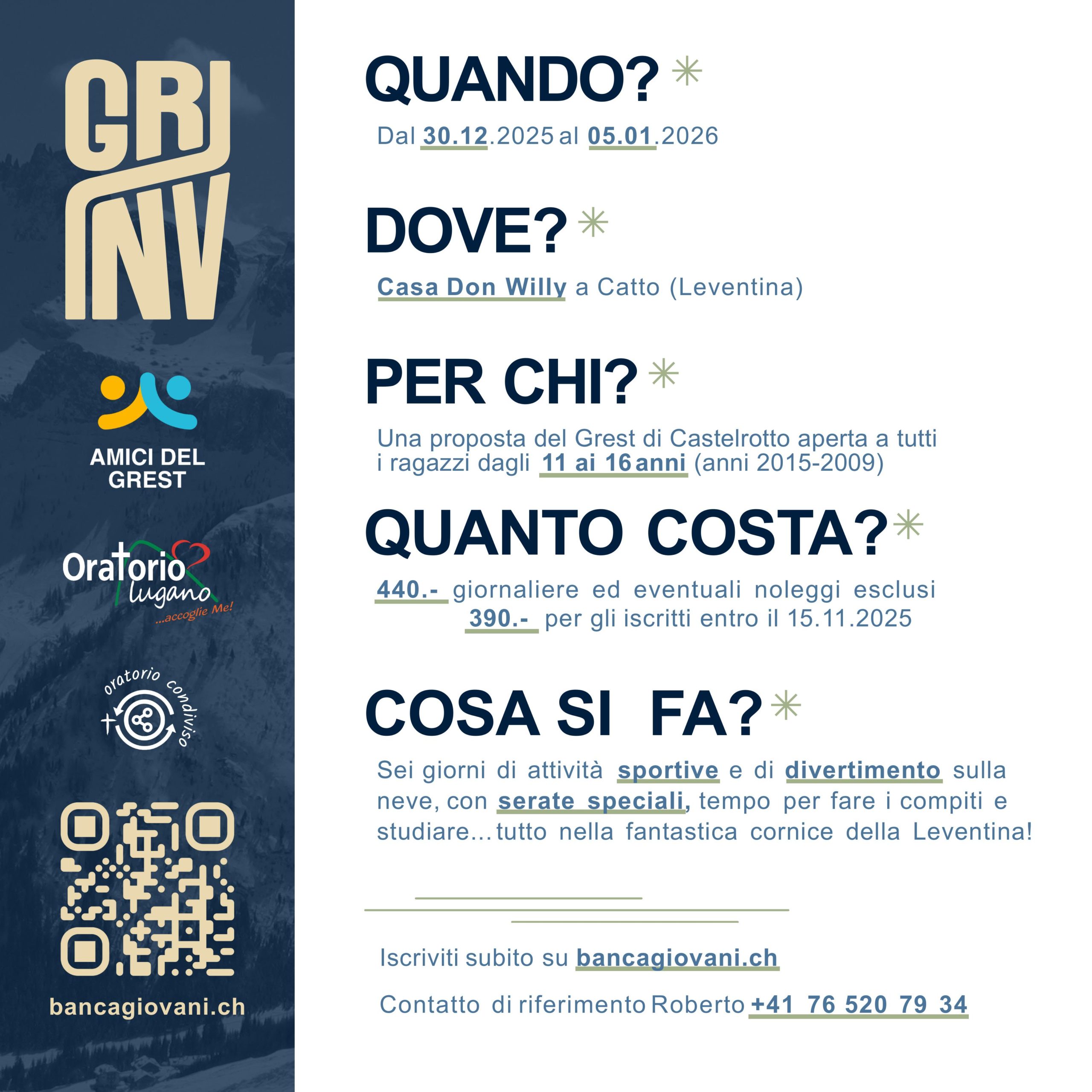 da martedì 30 dicembre 2025 a lunedì 5 gennaio 2026. Casa don Willy (Catto-Leventina) - Iscrizioni e info